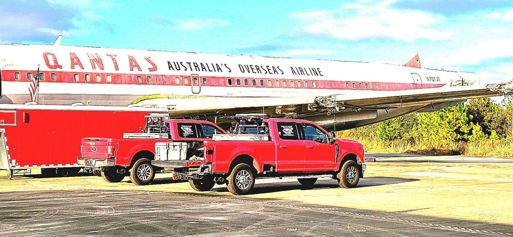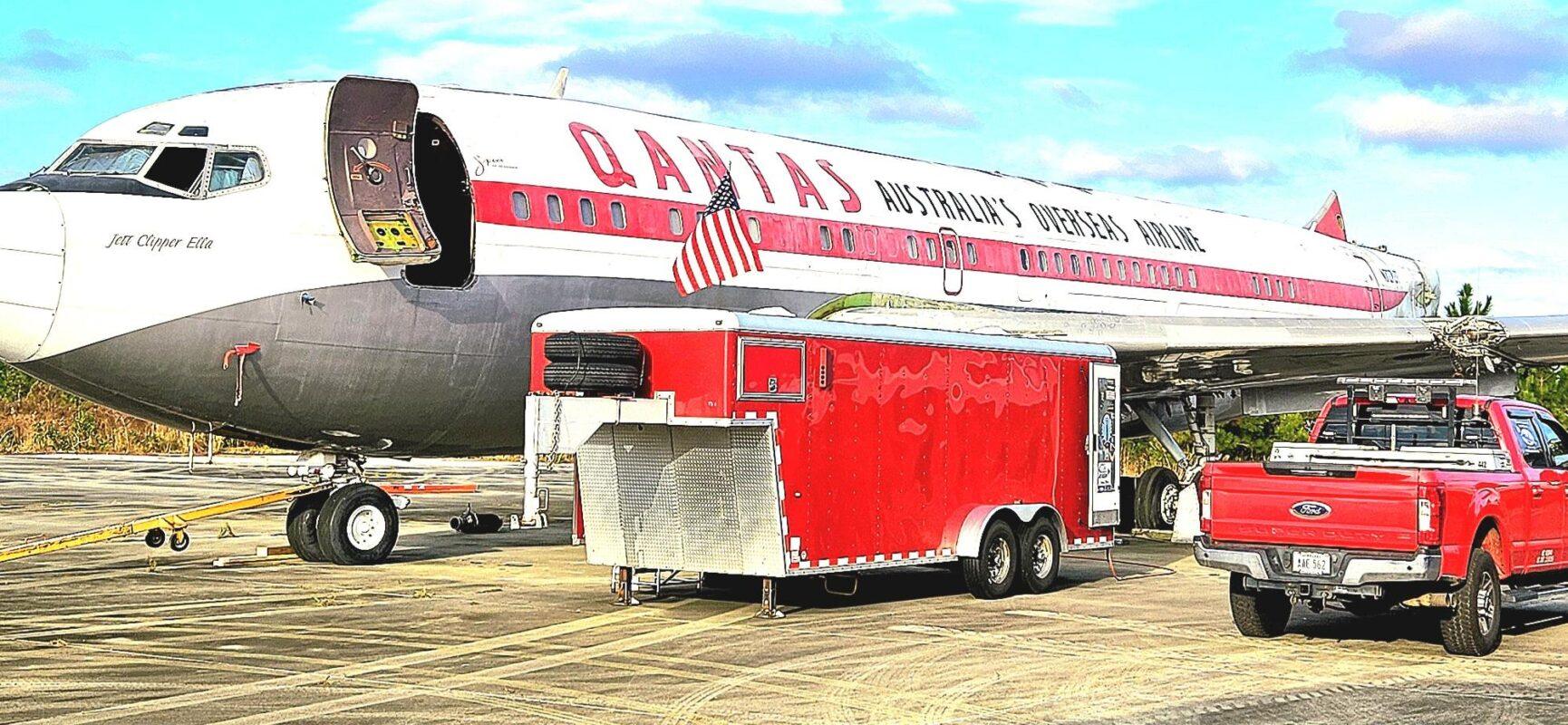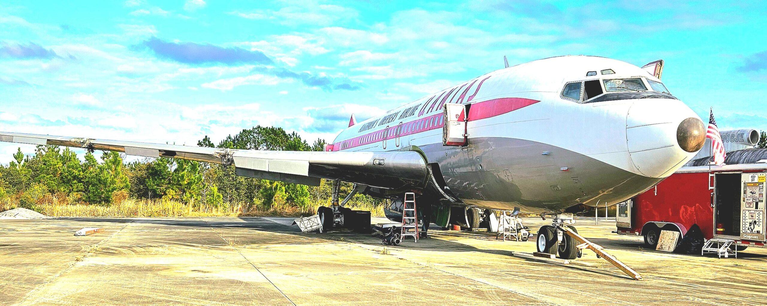 In 2024 we were contacted by HARS Aviation Museum in Albion Park, Australia to look at a Boeing 707 that was donated to the museum. After looking at and getting a game plan we decided to go ahead and accept the challenge. From that time a team from Australia and the help from Stambaugh Aviation removed the vertical and horizontal stabs, flaps, ailerons and many panels. In December of 2025 our team arrived on site in Brunswick GA at the Brunswick Golden Isles Airport to begin removing the wings. After removing the wings from the center section, the aircraft will be taken to the port in Brunswick to be loaded on a ship. From there it will make a long journey to Australia where it will be reassembled for display. The wonderful folks from Australia are planning to go through the aircraft once it is reassembled and have it to able to taxi around.